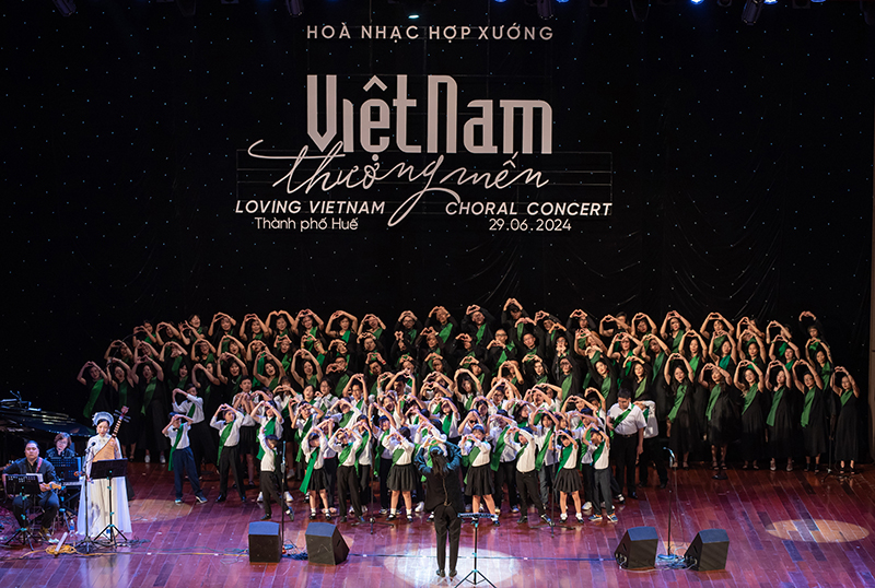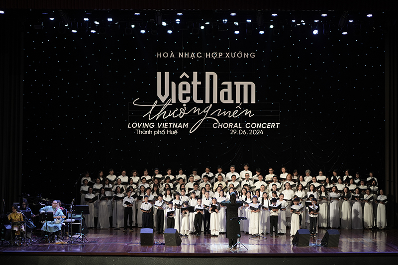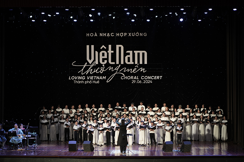 The first night of the Choral Concert series “Loving Vietnam 2024” took place on the evening of June 29, 2024, at Song Huong Theater, Hue City.